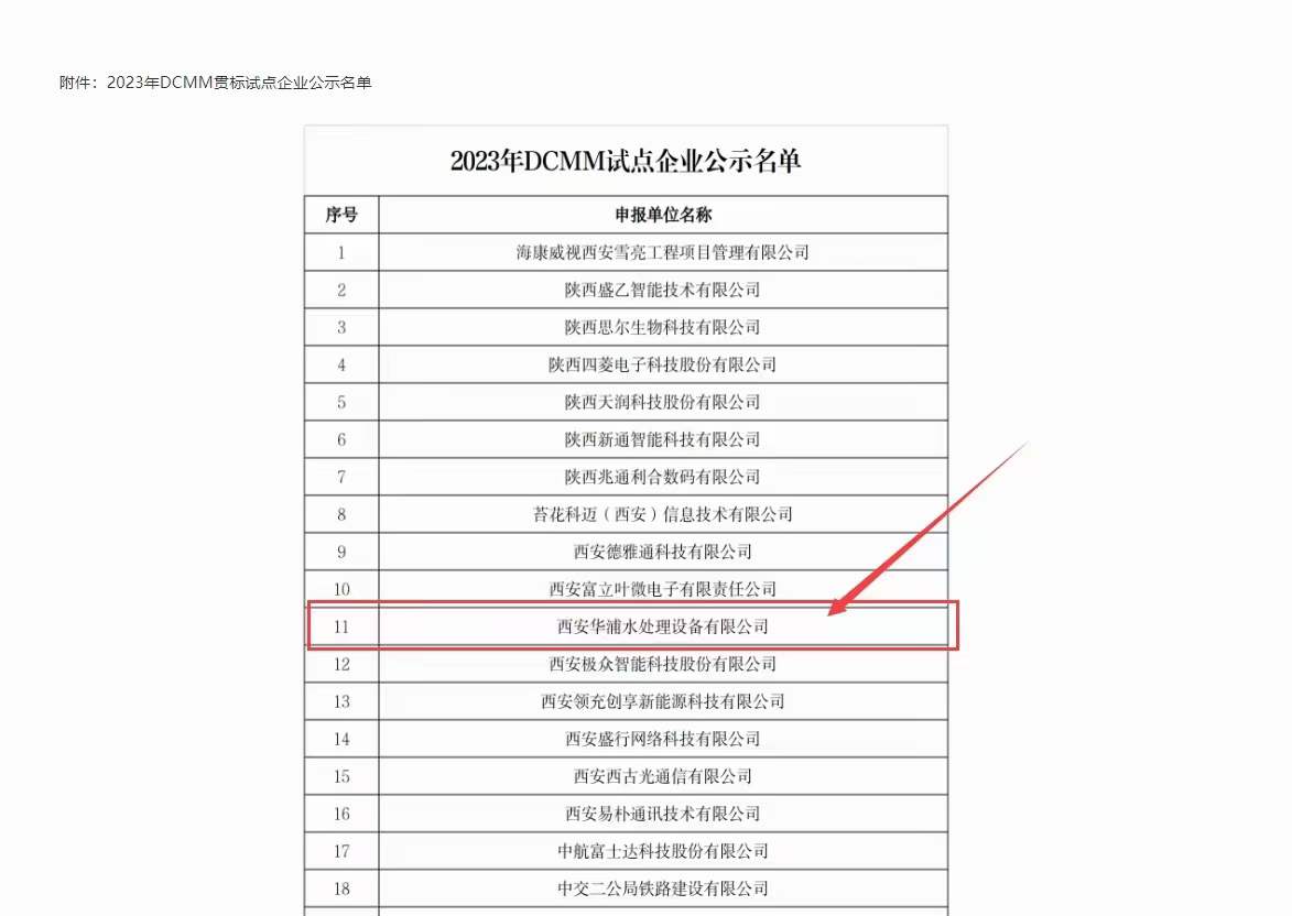 西安華浦水處理設(shè)備有限公司入選2023年度陜西省DCMM貫標(biāo)試點企業(yè),為水務(wù)系統(tǒng)數(shù)字化、網(wǎng)絡(luò)化、智能化發(fā)展貢獻(xiàn)華浦力量。