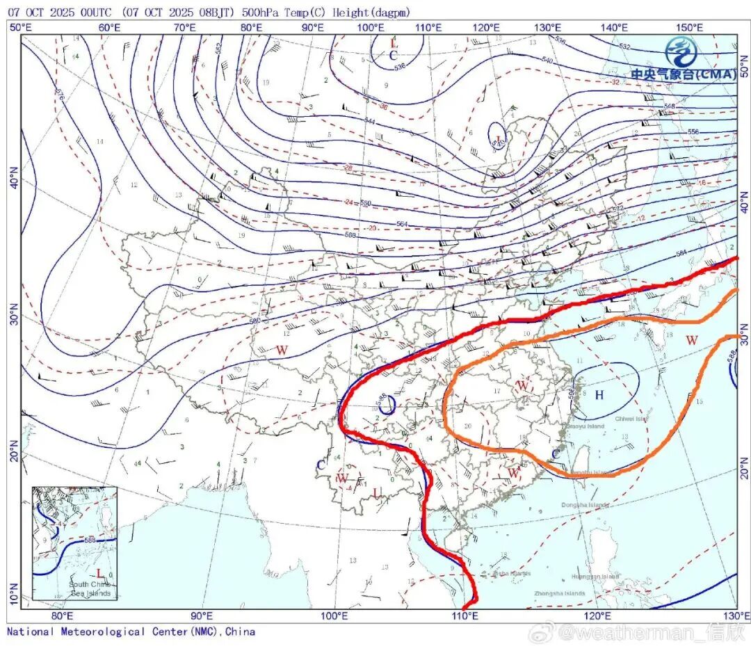 夏季,副熱帶高壓與大陸高壓雙雙偏強,如同一個巨大的“蒸籠”罩在上空,導(dǎo)致高溫少雨。而入秋后,副高依舊偏強、位置偏北,一方面使江南、華南在10月仍頻繁出現(xiàn)高溫,刷新最晚高溫日紀(jì)錄;另一方面,其西側(cè)與北側(cè)區(qū)域——包括華西、華北、黃淮一帶,成為冷暖氣流持續(xù)交匯的“主戰(zhàn)場”,降水異常偏多。